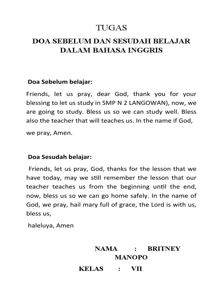 25 Contoh Doa Kristen Dalam Bahasa Inggris Dan Artinya Contoh Surat